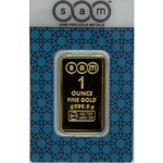 mngm offers 1 ounce minted SAM gold bars with 999.9 purity. Each bar comes with its own unique serial number, as well as a numbered certificate. You have the choice of having it delivered to you, or storing it securely in our vault, which is fully covered by insurance.